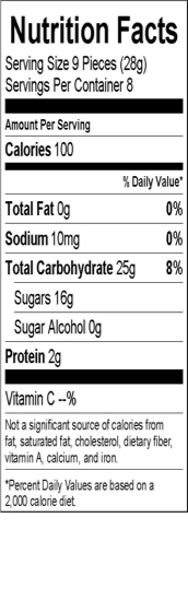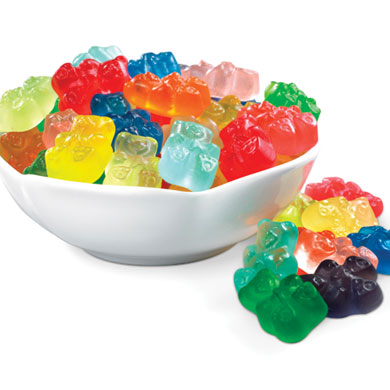 Corn Syrup, Sugar, Water, Gelatin, Sorbital From Fruits and Vegetables, Citric and Malic Acids from Fruits, FD&C Yellow 5&6, Blue #1, Red #40, Natural and Artificial Flavors, Vegetable Oil and Carnauba Wax Used for Antisticking.