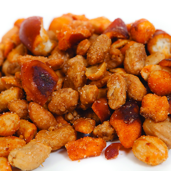 We blend our BBQ flavored peanuts with our fresh roasted cashews. Then we add crunchy BBQ flavored pretzels pieces and honey roasted peanuts for the tastiest and most addictive snack ever. 11 oz.